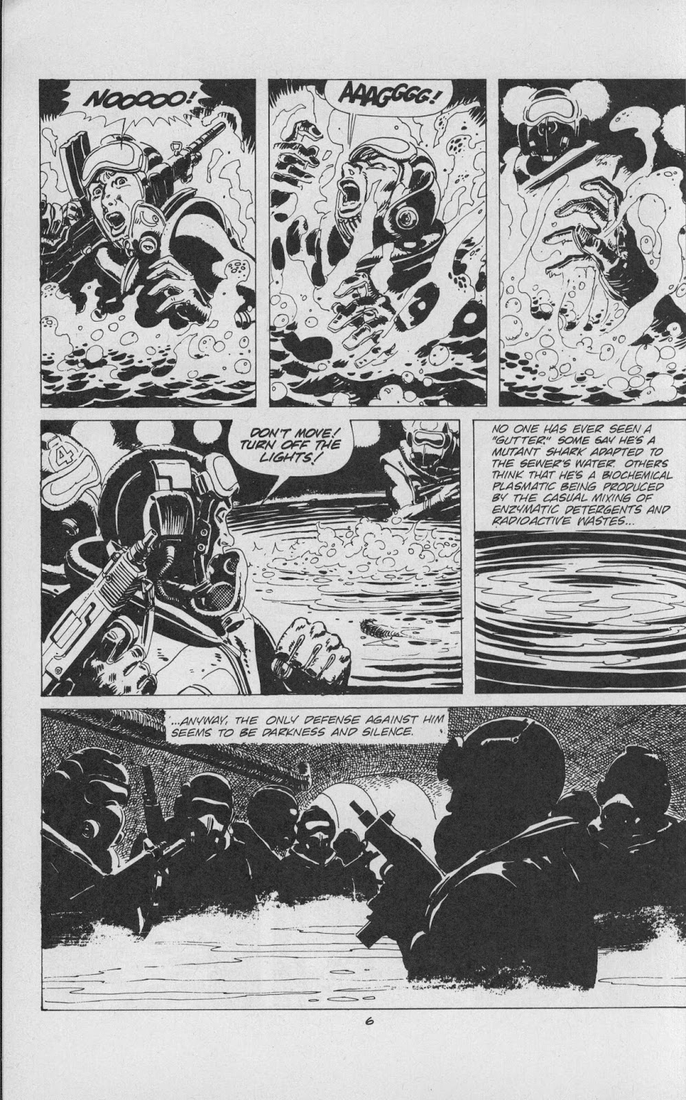 In the fourth and final issue of the series, Brian Chester, along with Delfina Carson, leads a commando team through New York City's sewers. Their mission: breach the stronghold of the Rofeller corporation. But the sewers of this postmodern NYC contain entities more dangerous than just the typical rat..... or alligator....