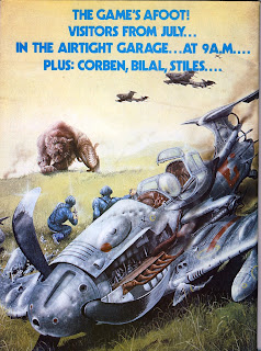 The latest issue of Heavy Metal features a cover by Patrick Couratin titled 'Mr Interlocutor ? Yes, Mr Bones' (obviously an avante gard title that is comprehensible only to French intellectuals), with the back cover by Jim Burns, titled 'Another DC-10 Bites the Dust'.