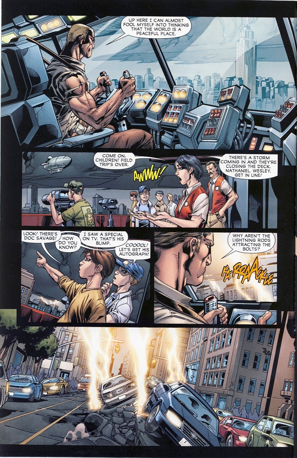 Things start off without much of a preamble as Doc, piloting his airship, encounters some deadly lightning attacks on his skyscraper in the heart of New York City: