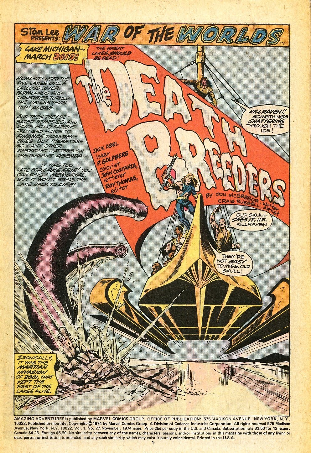 This issue is a welcome change from the rather mediocre efforts of the previous several installments of ‘Amazing Adventures’. Russell’s artwork is dynamic and shows attention to detail, and McGregor’s plot provides as much brutality and bloodshed as a Code-approved book could allow in 1974.