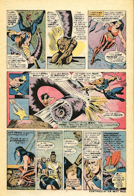 The Marvel Bullpen page trumpets the forthcoming hardbound book ‘Origins of Marvel Comics’, as well as a new magazine called ‘Nostalgia Illustrated’ (?!) which seems to have been yet another a spur-of-the-moment effort by Stan Lee to cash in on the nostalgia craze then gripping the popular culture.