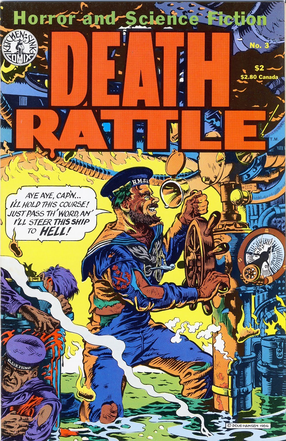 The story I have excerpted here, 'A Dead Man's Chest', is from issue 3, volume 2 (February 1986). The story and art are by Doug Hansen.