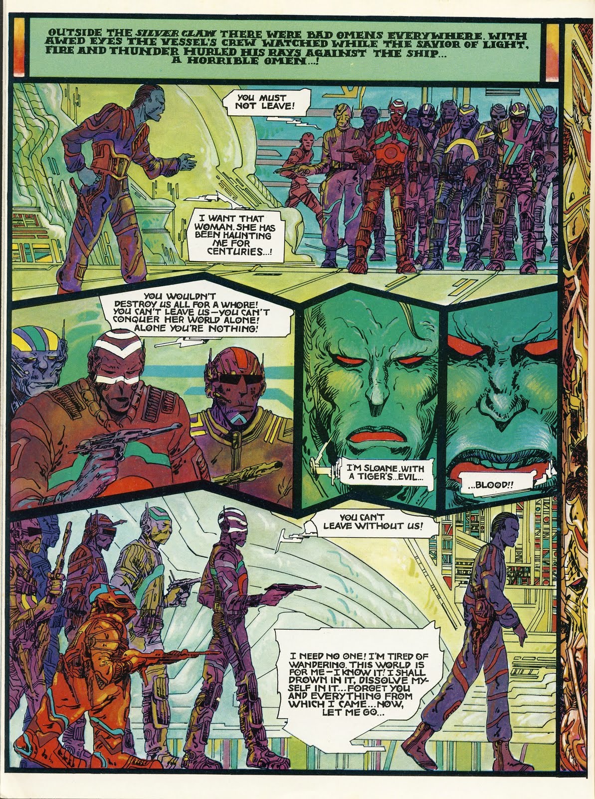 I've posted the Salammbo strip below. In this episode Loan Sloane, obsessed with Salammbo and determined to risk his ship's safety in order to rondezvous with her, deals with a rebellious crew in rather abrupt fashion.....