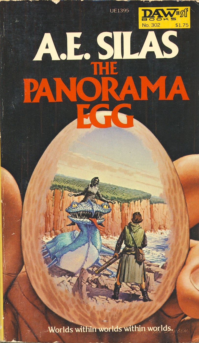 As best as I can tell, ‘The Panorama Egg’ is the sole book published by A(nne) E. Silas (information on the author’s exact identity is not available on the web). ‘Egg’ (224 pp.) is DAW book No. 302 and appeared in August 1978; the cover illustration is by H. R. Van Dongen.