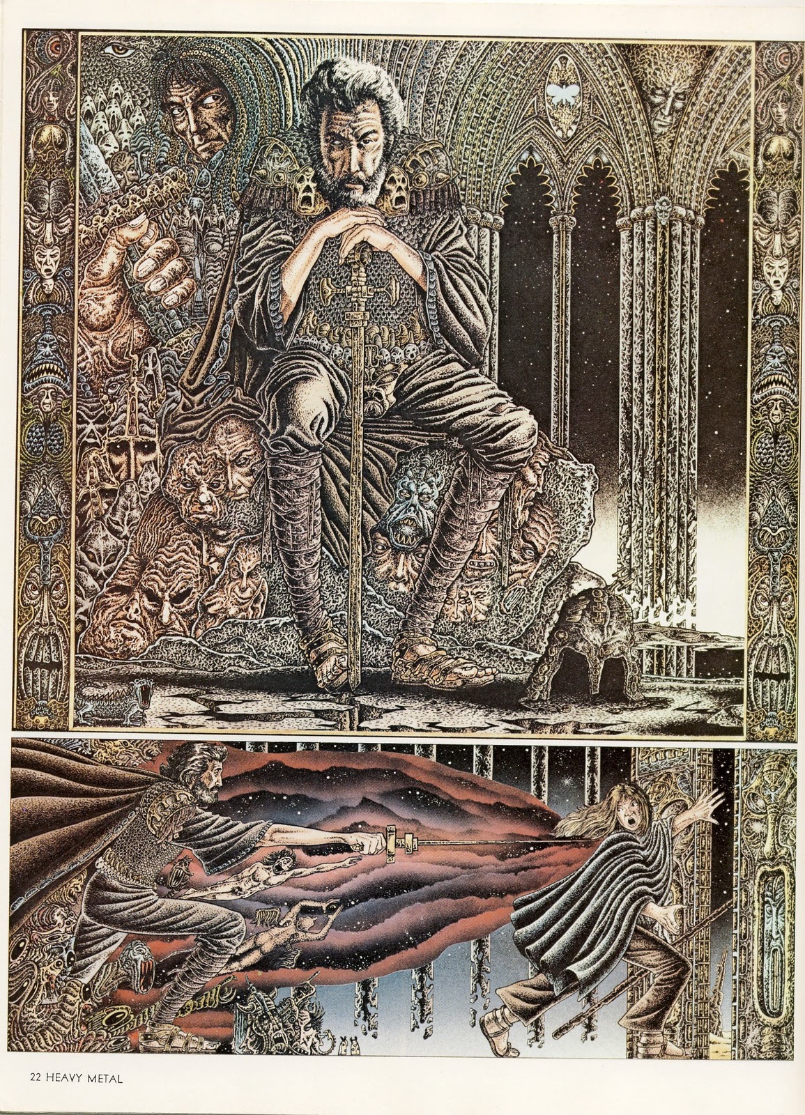 ‘The Silence of Erika Zann’ by James Wade: in a seedy music club an acid rock band named The Electric Commode , led by a striking singer named Erika Zann, starts to attract attention from the hipsters. The band’s music is strange and unearthly, and not all of the sounds are coming from the players on stage. [The theme of rock music as a natural outlet for Cthulhu worship is recycled by Alan Moore in his recent ‘The Courtyard’ and ‘Necronomicon’ comics for Avatar Press.]