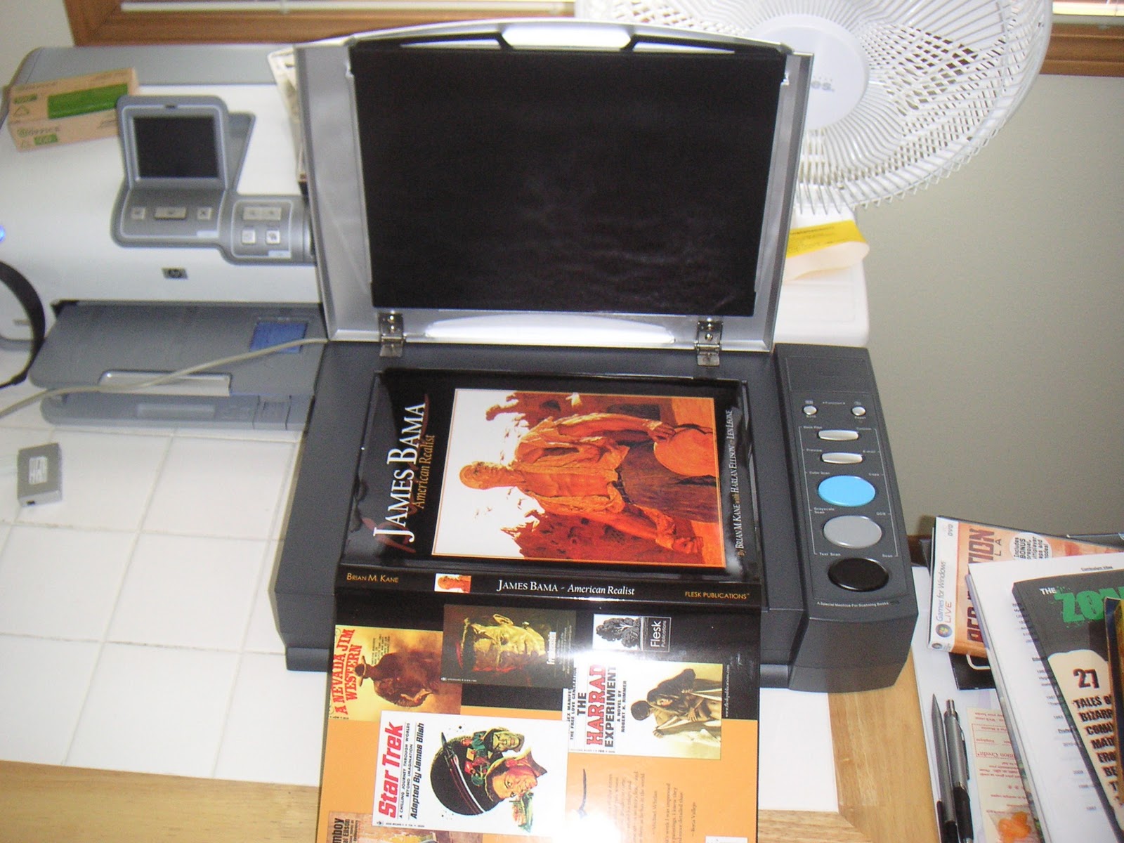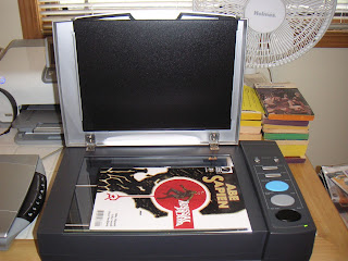 My Canon flatbed scanner provides good-quality images, but it's not designed for scanning the pages of books, and I don't want to break the spine of my books in order to get them scanned. Another problem comes with efforts to scan old copies of 'Heavy Metal' and comic books; too much flexing, and the covers can detach from the staples.