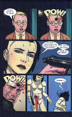 Later on in the issue, Cyan, the leader of the local cell of the Artist's Underground, has a violent confrontation with her ex-husband...........