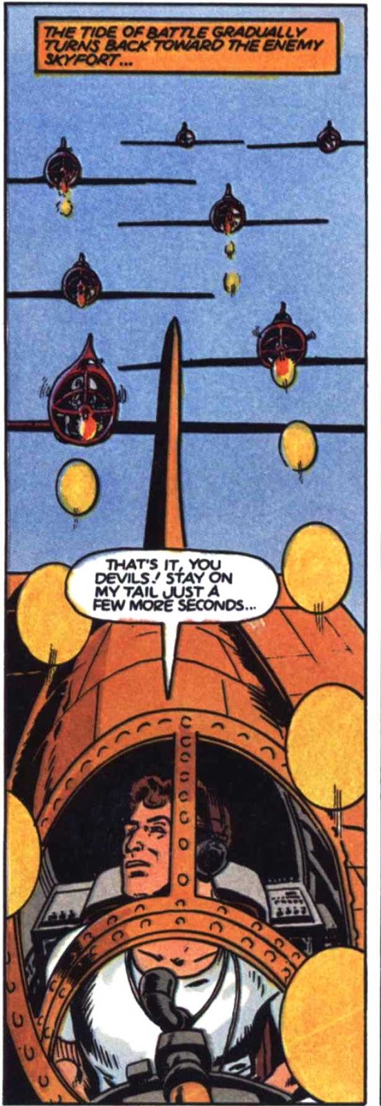 It transpires that the Sea Serpent is one of a number of vessels from various centuries, all brought into the future by the winged men. It seems the winged men are losing a war being waged against an aquatic subspecies of Homo sapiens, and they believe the firepower of the submarine, and the other vessels in their unusual armada, can destroy the undersea city of their adversaries.