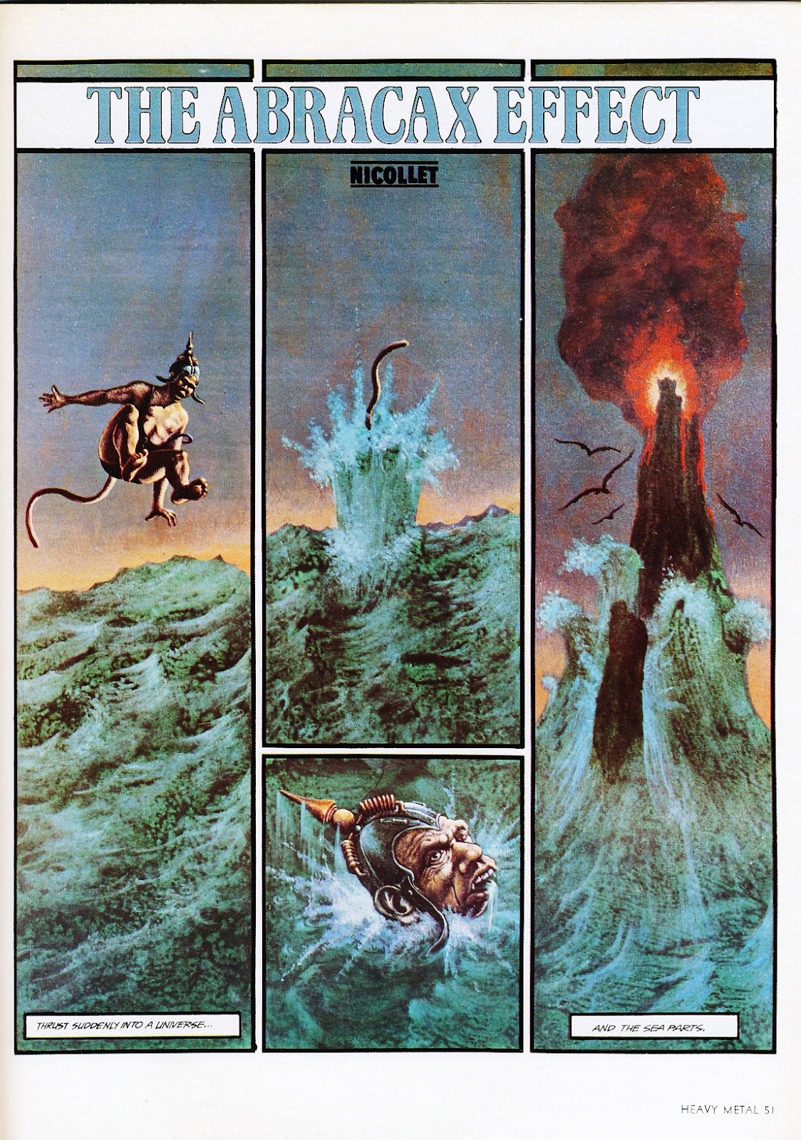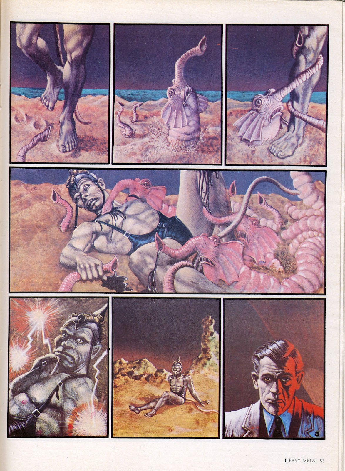 Kenlon and his crew succeed in capturing the winged man; no sooner is he imprisoned below decks, than the submarine is somehow transported to the Pacific Ocean of the far, far future: the year 24,999, to be exact.