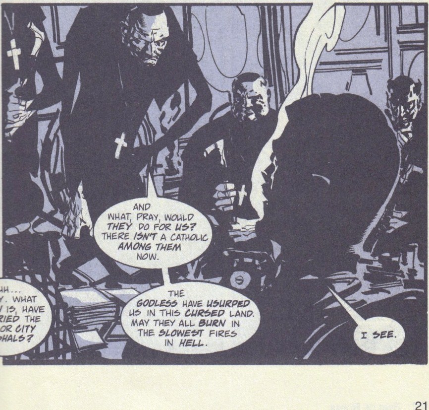 Where Roberts had a victorious Spanish Armada serving as the vehicle for Catholic ascendancy, here, it's James the Second's victory in the Battle of the Boyne in July 1690 that has enabled the Church to assume power.