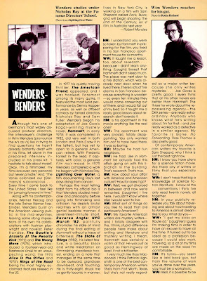 The Dossier opens up with Merle Greenberg's fevered coverage of someone named..... Robert Ashley ? (No, not Rick Astley). Then there is fawning coverage of one of the 80's most over-rated film directors, Wim Wenders.