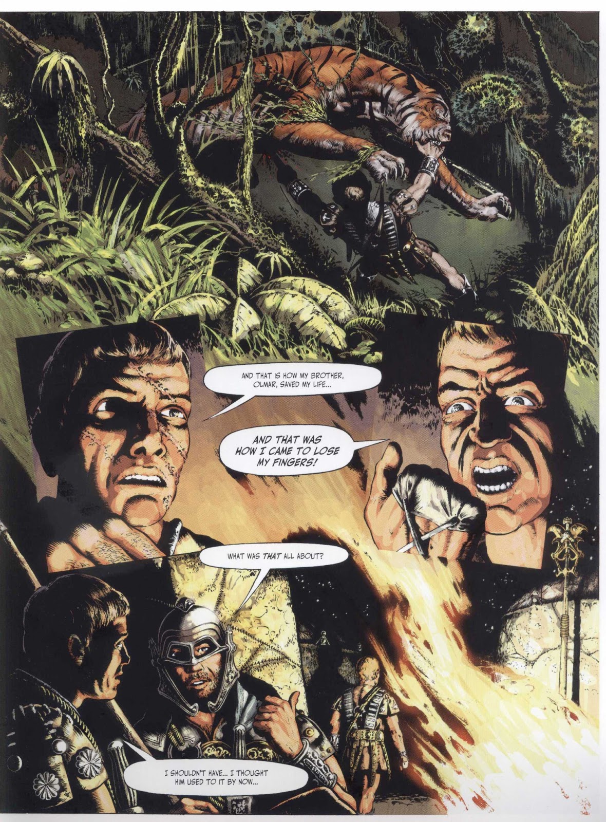 This edition of ‘Armies’ is colored (by Dan Brown); fans of the original series may not embrace this decision, but in his Preface, Dionnet remarks that Gal had originally attempted to color his artwork, but abandoned the approach due to the fact that the color reproduction technology of the mid-70s ended up obscuring his ink lines.