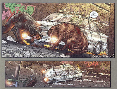 I won't disclose any spoilers, but over the course of the eight issues, Doot and Cusack encounter bumbling wizards; a vampire; dinosaurs; Custer; Yeti; Jim Hendrix; and a blue-skinned cat girl named 'Thornypaws' who wears only a g-string, and is likely the inspiration for the aliens in the James Cameron film Avatar.......