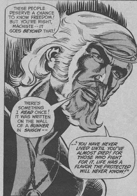 While remaining distinctive in its own right, Grell's artwork began to take on a more ornate, 'artistic' visual style, one similar to that used by South American, European, and Philippino artists like Alex Nino, Esteban Maroto, and Gonzalo Mayo for their fantasy comics in Eerie and Creepy.