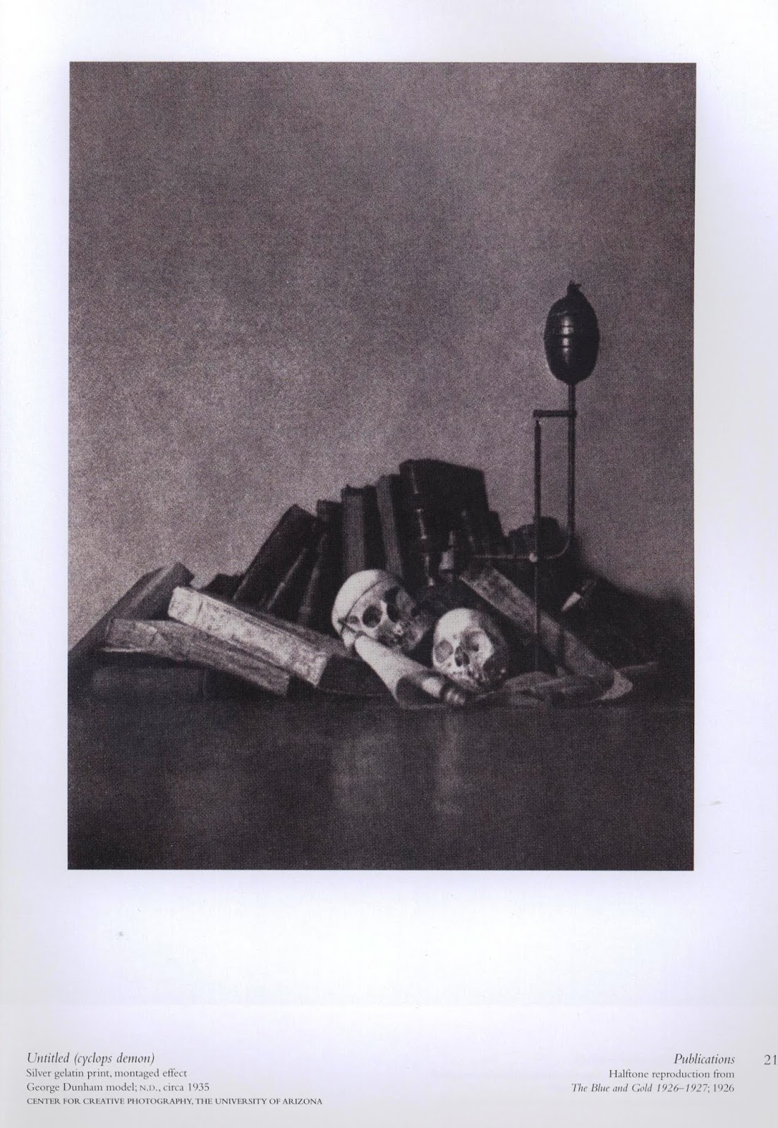 One of his most famous photographs, L'Amour, featured on the cover of the book, features a man in a gorilla suit. Mortensen used a self-designed 'texture screen' - a piece of film with minute cross-hatchings scored on its surface - in order to give the finished image the outward appearance of an engraving.