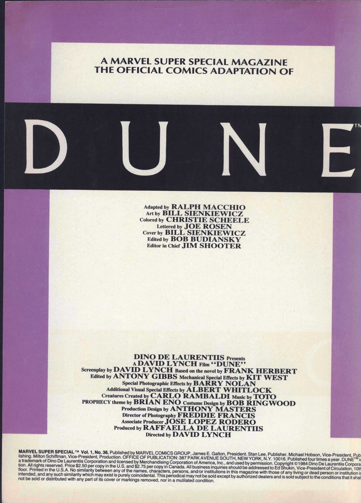 Strange as it may seem, the novel Dune has never appeared as a comic book. The closest it has come to a comic book incarnation was in 1984, when Marvel comics produced a 64-page comic adaptation of the movie under the Marvel 'Super Special' imprint, which was designed to showcase comic book adaptations of feature films.